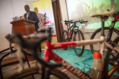 | Keywords: kenya nairobi nyeri laikipia kirinyaga meru embu mount epik challenge foothills naro moru running cycling tourism sport fitness health long distance runner athlete douglas wakiihuri cyclist david kinja race event kenya nairobi nyeri kenyanairobinyeri laikipia kirinyaga meru embu mount kenya epik challenge foothills naro moru running cycling tourism sport fitness health long distnace runner athelete douglas wakiihuri cyclist david kinja race event meruembumountkenyaepikchallengefoothillsnaromorurunningcyclingtourismsportfitnesshealthlongdistnacerunneratheletedouglaswakiihuricyclistdavidkinjaraceevent KENYA, Nairobi: In a photograph taken by Make It Kenya 07 July 2015, Joseph Otieno member International Association of Athletics Federations (IAAF) Bracewalking Commitee speaks during the Nairobi launch of the Mount Kenya Epik Challenge, a stage race created by Kinja and long distance runner Mr. Douglas Wakiihuri. The race will transverse the foothills of Mount Kenya and the flagship challenge is scheduled to begin and end at Naro Moru from 22nd to the 28th November 2015. The challenge will feature approximately 50-70 cyclists covering a distance of just under 500 km in 6 days 5 nights. The cycling challenge will be a six stage race and will see teams participate in daily portions of the mapped route made up of the five counties of Nyeri, Laikipia, Kirinyaga, Meru and Embu. The last day of the challenge will feature runners participating either in the fun run conducted on a 10km distance or the Altitude run of 26km to culminate at the Met Station, 3040m above sea level. Runners will have gone through 6-8weeks of pre-event training conducted at different altitude locations in order to protect them from experiencing altitude sickness and ensure they have adequate capacity to undergo the challenge. MANDATORY CREDIT: MAKE IT KENYA PHOTO / STUART PRICE. KENYA, Nairobi: In a photograph taken by Make It Kenya 07 July 2015, Joseph Otieno member International Association of Athletics Federations (IAAF) Bracewalking Commitee speaks during the Nairobi launch of the Mount Kenya Epik Challenge, a stage race created by Kinja and long distance runner Mr. Douglas Wakiihuri. The race will transverse the foothills of Mount Kenya and the flagship challenge is scheduled to begin and end at Naro Moru from 22nd to the 28th November 2015. The challenge will feature approximately 50-70 cyclists covering a distance of just under 500 km in 6 days 5 nights. The cycling challenge will be a six stage race and will see teams participate in daily portions of the mapped route made up of the five counties of Nyeri, Laikipia, Kirinyaga, Meru and Embu. The last day of the challenge will feature runners participating either in the fun run conducted on a 10km distance or the Altitude run of 26km to culminate at the Met Station, 3040m above sea level. Runners will have gone through 6-8weeks of pre-event training conducted at different altitude locations in order to protect them from experiencing altitude sickness and ensure they have adequate capacity to undergo the challenge. MANDATORY CREDIT: MAKE IT KENYA PHOTO / STUART PRICE. KENYA, Nairobi: In a photograph taken by the Ministry of East African Affairs, Commerce and Tourism (MEAACT) 07 July 2015, Joseph Otieno member International Association of Athletics Federations (IAAF) Bracewalking Commitee speaks during the Nairobi launch of the Mount Kenya Epik Challenge, a stage race created by Kinja and long distance runner Mr. Douglas Wakiihuri. The race will transverse the foothills of Mount Kenya and the flagship challenge is scheduled to begin and end at Naro Moru from 22nd to the 28th November 2015. The challenge will feature approximately 50-70 cyclists covering a distance of just under 500 km in 6 days 5 nights. The cycling challenge will be a six stage race and will see teams participate in daily portions of the mapped route made up of the five counties of Nyeri, Laikipia, Kirinyaga, Meru and Embu. The last day of the challenge will feature runners participating either in the fun run conducted on a 10km distance or the Altitude run of 26km to culminate at the Met Station, 3040m above sea level. Runners will have gone through 6-8weeks of pre-event training conducted at different altitude locations in order to protect them from experiencing altitude sickness and ensure they have adequate capacity to undergo the challenge. MANDATORY CREDIT: MEAACT PHOTO / STUART PRICE. KENYA, Nairobi: In a photograph taken by the Ministry of East African Affairs, Commerce and Tourism (MEAACT) 07 July 2015, Joseph Otieno member International Association of Athletics Federations (IAAF) Bracewalking Commitee speaks during the Nairobi launch of the Mount Kenya Epik Challenge, a stage race created by Kinja and long distance runner Mr. Douglas Wakiihuri. The race will transverse the foothills of Mount Kenya and the flagship challenge is scheduled to begin and end at Naro Moru from 22nd to the 28th November 2015. The challenge will feature approximately 50-70 cyclists covering a distance of just under 500 km in 6 days 5 nights. The cycling challenge will be a six stage race and will see teams participate in daily portions of the mapped route made up of the five counties of Nyeri, Laikipia, Kirinyaga, Meru and Embu. The last day of the challenge will feature runners participating either in the fun run conducted on a 10km distance or the Altitude run of 26km to culminate at the Met Station, 3040m above sea level. Runners will have gone through 6-8weeks of pre-event training conducted at different altitude locations in order to protect them from experiencing altitude sickness and ensure they have adequate capacity to undergo the challenge. MANDATORY CREDIT: MEAACT PHOTO / STUART PRICE. |