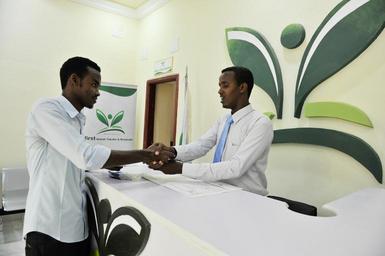 | Keywords: indoor A customer service officer (right) attends to a client at the offices of the first insurance company in Somalia called 'Takaful & Retakaful,' (meaning Insurance & Re-Insurance) in Mogadishu, Somalia on July 26, 2015. AMISOM Photo / Omar Abdisalam A customer service officer (right) attends to a client at the offices of the first insurance company in Somalia called 'Takaful & Retakaful,' (meaning Insurance & Re-Insurance) in Mogadishu, Somalia on July 26, 2015. AMISOM Photo / Omar Abdisalam |