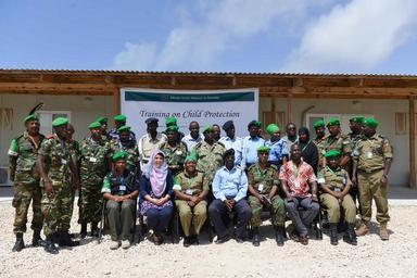 | Keywords: people The African Union Mission in Somalia (AMISOM) Deputy Police Commissioner Christine Alalo, the AMISOM Women & Child Protection Officer, Kaoutar Kaddouri and AMISOM officers from Djibouti, Ethiopia, Burundi, and Uganda, with Somali defence ministry officials and the Somali Police Force in a group photo during a training on child protection held in Mogadishu, Somalia on September 02 2015. The training was conducted by the AMISOM Protection and Human Rights Unit. AMISOM Photo / Ilyas Ahmed The African Union Mission in Somalia (AMISOM) Deputy Police Commissioner Christine Alalo, the AMISOM Women & Child Protection Officer, Kaoutar Kaddouri and AMISOM officers from Djibouti, Ethiopia, Burundi, and Uganda, with Somali defence ministry officials and the Somali Police Force in a group photo during a training on child protection held in Mogadishu, Somalia on September 02 2015. The training was conducted by the AMISOM Protection and Human Rights Unit. AMISOM Photo / Ilyas Ahmed |