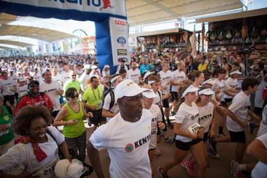 Keywords: kenya italy milan expo 2015 traditional singing dancing song dance race marathon athletes runners run 3km 10km music celebration showcase world coffee nation tourism investment ITALY, Milan: In a photograph taken by Make It Kenya 10 September 2015, runners kick-off a 3km family fun run outside the Kenya Pavilion as part of Kenyan Week celebrations at Expo Milan 2015, a universal exhibition and platform for the exchange of ideas and shared solutions on the theme of food. A number of events were held in Milan to mark the occasion, incluing the 3km family fun run completed by Hon. Phyllis Kandie, Minister for East Afrian Affairs, Commerce and Tourism (MEAACT) and the Kenya Expo Run With The Champions 10km race in which some of Kenyans top athletes competed against professional and enthusiast runners alike. MANDATORY CREDIT: MAKE IT KENYA PHOTO / STUART PRICE. ITALY, Milan: In a photograph taken by Make It Kenya 10 September 2015, runners kick-off a 3km family fun run outside the Kenya Pavilion as part of Kenyan Week celebrations at Expo Milan 2015, a universal exhibition and platform for the exchange of ideas and shared solutions on the theme of food. A number of events were held in Milan to mark the occasion, incluing the 3km family fun run completed by Hon. Phyllis Kandie, Minister for East Afrian Affairs, Commerce and Tourism (MEAACT) and the Kenya Expo Run With The Champions 10km race in which some of Kenyans top athletes competed against professional and enthusiast runners alike. MANDATORY CREDIT: MAKE IT KENYA PHOTO / STUART PRICE.