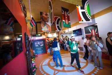 | Keywords: kenya italy milan expo 2015 traditional singing dancing song dance race marathon athletes runners run 3km 10km music celebration showcase world coffee nation tourism investment indoor ITALY, Milan: Photograph taken by Make It Kenya 10 September 2015, shows inside the Kenya Pavilion as part of Kenyan Week celebrations at Expo Milan 2015, a universal exhibition and platform for the exchange of ideas and shared solutions on the theme of food. A number of events were held in Milan to mark the occasion, incluing a 3km family fun run completed by Hon. Phyllis Kandie, Minister for East Afrian Affairs, Commerce and Tourism (MEAACT) and the Kenya Expo Run With The Champions 10km race in which some of Kenyans top athletes competed against professional and enthusiast runners alike. MANDATORY CREDIT: MAKE IT KENYA PHOTO / STUART PRICE. ITALY, Milan: Photograph taken by Make It Kenya 10 September 2015, shows inside the Kenya Pavilion as part of Kenyan Week celebrations at Expo Milan 2015, a universal exhibition and platform for the exchange of ideas and shared solutions on the theme of food. A number of events were held in Milan to mark the occasion, incluing a 3km family fun run completed by Hon. Phyllis Kandie, Minister for East Afrian Affairs, Commerce and Tourism (MEAACT) and the Kenya Expo Run With The Champions 10km race in which some of Kenyans top athletes competed against professional and enthusiast runners alike. MANDATORY CREDIT: MAKE IT KENYA PHOTO / STUART PRICE. |