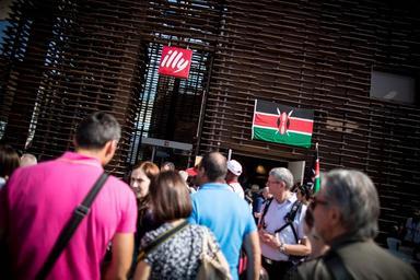 | Keywords: kenya italy milan expo 2015 traditional singing dancing song dance race marathon athletes runners run 3km 10km music celebration showcase world coffee nation tourism investment people ITALY, Milan: Photograph taken by Make It Kenya 10 September 2015, visitors gather outside the Kenya Pavilion as part of Kenyan Week celebrations at Expo Milan 2015, a universal exhibition and platform for the exchange of ideas and shared solutions on the theme of food. A number of events were held in Milan to mark the occasion, incluing a 3km family fun run completed by Hon. Phyllis Kandie, Minister for East Afrian Affairs, Commerce and Tourism (MEAACT) and the Kenya Expo Run With The Champions 10km race in which some of Kenyans top athletes competed against professional and enthusiast runners alike. MANDATORY CREDIT: MAKE IT KENYA PHOTO / STUART PRICE. ITALY, Milan: Photograph taken by Make It Kenya 10 September 2015, visitors gather outside the Kenya Pavilion as part of Kenyan Week celebrations at Expo Milan 2015, a universal exhibition and platform for the exchange of ideas and shared solutions on the theme of food. A number of events were held in Milan to mark the occasion, incluing a 3km family fun run completed by Hon. Phyllis Kandie, Minister for East Afrian Affairs, Commerce and Tourism (MEAACT) and the Kenya Expo Run With The Champions 10km race in which some of Kenyans top athletes competed against professional and enthusiast runners alike. MANDATORY CREDIT: MAKE IT KENYA PHOTO / STUART PRICE. |