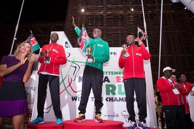 | Keywords: kenya italy milan expo 2015 traditional singing dancing song dance race marathon athletes runners run 3km 10km music celebration showcase world coffee nation tourism investment team sport sport podium ITALY, Milan: In a photograph taken by Make It Kenya 10 September 2015, Thomas James Lokomwa (centre), winner of the men's Kenya Expo 'Run With The Champions' 10km race held at Expo Milan 2015, stands with second place Geoffrey Kiprono Ngetich (left) and third place Silas Muturi Gichovi (right) on the podium having received their trophies. The race, along with a family 3km fun-run which took place earlier in the day, was one of a number of events held in Milan this week to mark the Kenyan Week celebrations at Expo Milan 2015, a universal exhibition and platform for the exchange of ideas and shared solutions on the theme of food. MANDATORY CREDIT: MAKE IT KENYA PHOTO / STUART PRICE. ITALY, Milan: In a photograph taken by Make It Kenya 10 September 2015, Thomas James Lokomwa (centre), winner of the men's Kenya Expo 'Run With The Champions' 10km race held at Expo Milan 2015, stands with second place Geoffrey Kiprono Ngetich (left) and third place Silas Muturi Gichovi (right) on the podium having received their trophies. The race, along with a family 3km fun-run which took place earlier in the day, was one of a number of events held in Milan this week to mark the Kenyan Week celebrations at Expo Milan 2015, a universal exhibition and platform for the exchange of ideas and shared solutions on the theme of food. MANDATORY CREDIT: MAKE IT KENYA PHOTO / STUART PRICE. |