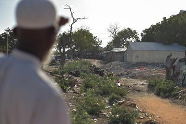 | Keywords: outdoor The loser of a former match stands next to the target, in this case a sandal that has been propped up, in order to collect the arrows which have been shot and return them to the competitors. AMISOM Photo / Tobin Jones The loser of a former match stands next to the target, in this case a sandal that has been propped up, in order to collect the arrows which have been shot and return them to the competitors. AMISOM Photo / Tobin Jones | ||||