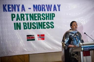 | Keywords: norway kenya business partnership nairobi trade investment relations development public private sector ceos companies KENYA, Nairobi: In a photograph taken by Make It Kenya 18 September 2015, Dr. Amina Mohamed, Cabinet Secretary for The Kenyan Ministry of Foreign Affairs and International Trade speaks at the opening of the Kenya-Norway Partnership in Business Seminar at the InterContinental Hotel in the Kenyan capital Nairobi. The seminar saw Norway's Minister of Trade & Industry Ms. Monica Maelend lead a delegation of over 50 Norwegian CEOs and business representatives to Kenya to meet a series of high profile public and private sector companies in a move designed as a major development in Kenya-Norway investment relations. MAKE IT KENYA PHOTO / STUART PRICE. KENYA, Nairobi: In a photograph taken by Make It Kenya 18 September 2015, Dr. Amina Mohamed, Cabinet Secretary for The Kenyan Ministry of Foreign Affairs and International Trade speaks at the opening of the Kenya-Norway Partnership in Business Seminar at the InterContinental Hotel in the Kenyan capital Nairobi. The seminar saw Norway's Minister of Trade & Industry Ms. Monica Maelend lead a delegation of over 50 Norwegian CEOs and business representatives to Kenya to meet a series of high profile public and private sector companies in a move designed as a major development in Kenya-Norway investment relations. MAKE IT KENYA PHOTO / STUART PRICE. |