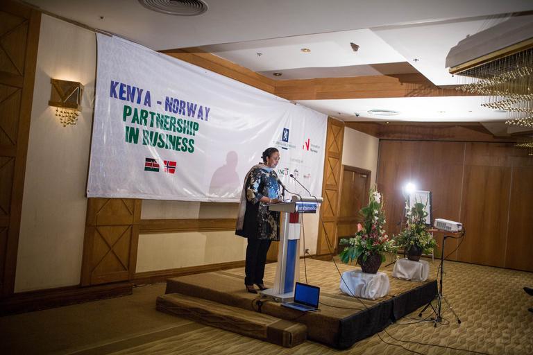 | Keywords: norway kenya business partnership nairobi trade investment relations development public private sector ceos companies indoor KENYA, Nairobi: In a photograph taken by Make It Kenya 18 September 2015, Dr. Amina Mohamed, Cabinet Secretary for The Kenyan Ministry of Foreign Affairs and International Trade speaks at the opening of the Kenya-Norway Partnership in Business Seminar at the InterContinental Hotel in the Kenyan capital Nairobi. The seminar saw Norway's Minister of Trade & Industry Ms. Monica Maelend lead a delegation of over 50 Norwegian CEOs and business representatives to Kenya to meet a series of high profile public and private sector companies in a move designed as a major development in Kenya-Norway investment relations. MAKE IT KENYA PHOTO / STUART PRICE. KENYA, Nairobi: In a photograph taken by Make It Kenya 18 September 2015, Dr. Amina Mohamed, Cabinet Secretary for The Kenyan Ministry of Foreign Affairs and International Trade speaks at the opening of the Kenya-Norway Partnership in Business Seminar at the InterContinental Hotel in the Kenyan capital Nairobi. The seminar saw Norway's Minister of Trade & Industry Ms. Monica Maelend lead a delegation of over 50 Norwegian CEOs and business representatives to Kenya to meet a series of high profile public and private sector companies in a move designed as a major development in Kenya-Norway investment relations. MAKE IT KENYA PHOTO / STUART PRICE. |