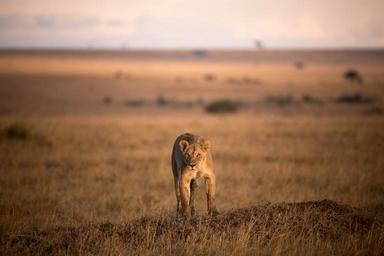 Keywords: outdoor field landscape animal KENYA, Masai Mara: In a photograph taken by Make It Kenya 29 September 2015, a lioness from a group of lions known as the Marsh Pride, made famous by wildlife film-makers Jonathan and Angela Scott in the BBC natural history serialisation Big Cat Diary, focuses on a group of Burchill's zebra in the distance from the top of an earth mound late in the afternoon in Kenya's Masai Mara National Reserve. During the months of July through to October, one of nature's greatest events takes place in the Mara when hundreds of thousands of wildebeest, zebra and other ungulates migrate northwards from Tanzania's Serengeti in search of fresh pasture and grazing, before turning and heading south again in a journey that covers thousands of kilometres and is known as one of the seven natural wonders of the world, making it a major draw for wildlife enthusiasts and tourists from around the globe. MANDATORY CREDIT: MAKE IT KENYA PHOTO / STUART PRICE. KENYA, Masai Mara: In a photograph taken by Make It Kenya 29 September 2015, a lioness from a group of lions known as the Marsh Pride, made famous by wildlife film-makers Jonathan and Angela Scott in the BBC natural history serialisation Big Cat Diary, focuses on a group of Burchill's zebra in the distance from the top of an earth mound late in the afternoon in Kenya's Masai Mara National Reserve. During the months of July through to October, one of nature's greatest events takes place in the Mara when hundreds of thousands of wildebeest, zebra and other ungulates migrate northwards from Tanzania's Serengeti in search of fresh pasture and grazing, before turning and heading south again in a journey that covers thousands of kilometres and is known as one of the seven natural wonders of the world, making it a major draw for wildlife enthusiasts and tourists from around the globe. MANDATORY CREDIT: MAKE IT KENYA PHOTO / STUART PRICE.