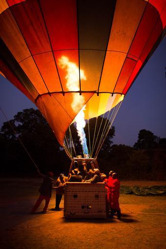Keywords: KENYA, Masai Mara: In a photograph taken by Make It Kenya 30 September 2015, people watch a gas is flared into a Governor's Balloon Safari hot air balloon in preparation for a flight over the Masai Mara National Reserve. Seeing the Mara from the air requires an early start in order to be airborne for the sunrise, but offers tourists visiting the famous wildlife reserve a unique and panoramic way to view one of Kenya's most famous natural attractions from the basket of a hot air balloon. MANDATORY CREDIT: MAKE IT KENYA PHOTO / STUART PRICE. KENYA, Masai Mara: In a photograph taken by Make It Kenya 30 September 2015, people watch a gas is flared into a Governor's Balloon Safari hot air balloon in preparation for a flight over the Masai Mara National Reserve. Seeing the Mara from the air requires an early start in order to be airborne for the sunrise, but offers tourists visiting the famous wildlife reserve a unique and panoramic way to view one of Kenya's most famous natural attractions from the basket of a hot air balloon. MANDATORY CREDIT: MAKE IT KENYA PHOTO / STUART PRICE.