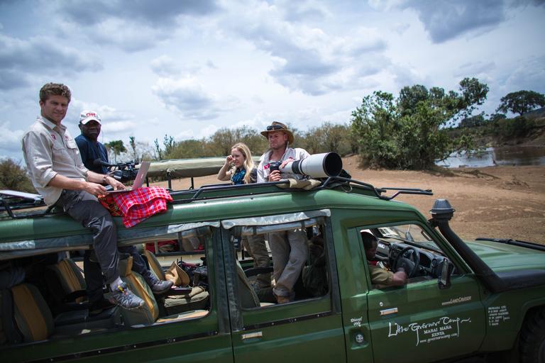 | Keywords: outdoor KENYA, Masai Mara: In a photograph taken by Make It Kenya 01 October 2015, Herdtracker Co-founders Andre Van Kets (left) and Carel Verheof (right) host a film crew from CNN in the Masai Mara National Reserve. During the months of July through to October, one of nature's greatest events takes place in the Mara when hundreds of thousands of wildebeest, zebra and other ungulates migrate northwards from Tanzania's Serengeti in search of fresh pasture and grazing, before turning and heading south again in a journey that covers thousands of kilometres and is known as one of the seven natural wonders of the world, making it a major draw for wildlife enthusiasts and tourists from around the globe. MANDATORY CREDIT: MAKE IT KENYA PHOTO / STUART PRICE. KENYA, Masai Mara: In a photograph taken by Make It Kenya 01 October 2015, Herdtracker Co-founders Andre Van Kets (left) and Carel Verheof (right) host a film crew from CNN in the Masai Mara National Reserve. During the months of July through to October, one of nature's greatest events takes place in the Mara when hundreds of thousands of wildebeest, zebra and other ungulates migrate northwards from Tanzania's Serengeti in search of fresh pasture and grazing, before turning and heading south again in a journey that covers thousands of kilometres and is known as one of the seven natural wonders of the world, making it a major draw for wildlife enthusiasts and tourists from around the globe. MANDATORY CREDIT: MAKE IT KENYA PHOTO / STUART PRICE. |