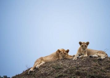 | Keywords: outdoor KENYA, Masai Mara: In a photograph taken by Make It Kenya 01 October 2015, two sub-adult members of the Marsh Pride sit atop an earthen mound on the savannah of the Masai Mara National Reserve. During the months of July through to October, one of nature's greatest events takes place in the Mara when hundreds of thousands of wildebeest, zebra and other ungulates migrate northwards from Tanzania's Serengeti in search of fresh pasture and grazing, before turning and heading south again in a journey that covers thousands of kilometres and is known as one of the seven natural wonders of the world, making it a major draw for wildlife enthusiasts and tourists from around the globe. MANDATORY CREDIT: MAKE IT KENYA PHOTO / STUART PRICE. KENYA, Masai Mara: In a photograph taken by Make It Kenya 01 October 2015, two sub-adult members of the Marsh Pride sit atop an earthen mound on the savannah of the Masai Mara National Reserve. During the months of July through to October, one of nature's greatest events takes place in the Mara when hundreds of thousands of wildebeest, zebra and other ungulates migrate northwards from Tanzania's Serengeti in search of fresh pasture and grazing, before turning and heading south again in a journey that covers thousands of kilometres and is known as one of the seven natural wonders of the world, making it a major draw for wildlife enthusiasts and tourists from around the globe. MANDATORY CREDIT: MAKE IT KENYA PHOTO / STUART PRICE. |