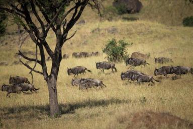 | Keywords: outdoor KENYA, Masai Mara: In a photograph taken by Make It Kenya 03 October 2015, wildebeest are seen running across the savannah below the Oloololo Escarpment in the Mara Triangle, part of Kenya's wider Masai Mara ecosystem. During the months of July through to October, one of nature's greatest events takes place in the Mara when hundreds of thousands of wildebeest, zebra and other ungulates migrate northwards from Tanzania's Serengeti in search of fresh pasture and grazing, before turning and heading south again in a journey that covers thousands of kilometres and is known as one of the seven natural wonders of the world, making it a major draw for wildlife enthusiasts and tourists from around the globe. MANDATORY CREDIT: MAKE IT KENYA PHOTO / STUART PRICE. KENYA, Masai Mara: In a photograph taken by Make It Kenya 03 October 2015, wildebeest are seen running across the savannah below the Oloololo Escarpment in the Mara Triangle, part of Kenya's wider Masai Mara ecosystem. During the months of July through to October, one of nature's greatest events takes place in the Mara when hundreds of thousands of wildebeest, zebra and other ungulates migrate northwards from Tanzania's Serengeti in search of fresh pasture and grazing, before turning and heading south again in a journey that covers thousands of kilometres and is known as one of the seven natural wonders of the world, making it a major draw for wildlife enthusiasts and tourists from around the globe. MANDATORY CREDIT: MAKE IT KENYA PHOTO / STUART PRICE. |