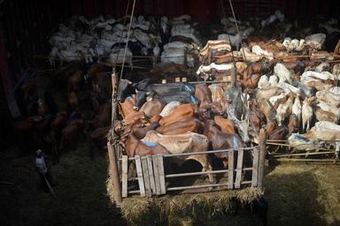 | Keywords: Cattle are loaded into the hold of a ship at Mogadishu, Seaport, on October 29. The cattle are destined for the port of Muscat in Oman. AMISOM Photo / Tobin Jones Cattle are loaded into the hold of a ship at Mogadishu, Seaport, on October 29. The cattle are destined for the port of Muscat in Oman. AMISOM Photo / Tobin Jones |