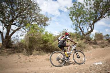 | Keywords: sport bike vehicle motorcycle outdoor KENYA, Naro Moru: In a photograph taken by Make it Kenya 31 October, cyclists take part in the Naro Moru Trail Trial race, a pre-cursor event to the inaugural Mt. Kenya Epik Challenge which will take place from the 22-28 November. The Trial Trail, organised by Naro Moru River Lodge, hosted over 30 cyclists including men, women and children, and saw the participants covering 35km along an off-road course around the surrounding area. The Epik Challenge, which was founded by former world marathon champion Douglas Wakihuri and renown cyclist David Kinja, will begin at Naro Moru and traverse through the counties of Laikipia, Kirinyaga, Nyeri, Meru and Embu, and see participants cycle through the stunning foothills of Mt. Kenya, through bush, wilderness, wildlife and villages, covering almost 500km in six days. MAKE IT KENYA PHOTO / STUART PRICE. KENYA, Naro Moru: In a photograph taken by Make it Kenya 31 October, cyclists take part in the Naro Moru Trail Trial race, a pre-cursor event to the inaugural Mt. Kenya Epik Challenge which will take place from the 22-28 November. The Trial Trail, organised by Naro Moru River Lodge, hosted over 30 cyclists including men, women and children, and saw the participants covering 35km along an off-road course around the surrounding area. The Epik Challenge, which was founded by former world marathon champion Douglas Wakihuri and renown cyclist David Kinja, will begin at Naro Moru and traverse through the counties of Laikipia, Kirinyaga, Nyeri, Meru and Embu, and see participants cycle through the stunning foothills of Mt. Kenya, through bush, wilderness, wildlife and villages, covering almost 500km in six days. MAKE IT KENYA PHOTO / STUART PRICE. |
