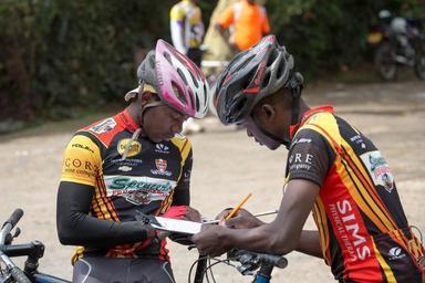 | Keywords: outdoor KENYA, Naro Moru: In a photograph taken by Make it Kenya 31 October, cyclists register ahead of the start of the Naro Moru Trail Trial race, a pre-cursor event to the inaugural Mt. Kenya Epik Challenge which will take place from the 22-28 November. The Trial Trail, organised by Naro Moru River Lodge, hosted over 30 cyclists including men, women and children, and saw the participants covering 35km along an off-road course around the surrounding area. The Epik Challenge, which was founded by former world marathon champion Douglas Wakihuri and renown cyclist David Kinja, will begin at Naro Moru and traverse through the counties of Laikipia, Kirinyaga, Nyeri, Meru and Embu, and see participants cycle through the stunning foothills of Mt. Kenya, through bush, wilderness, wildlife and villages, covering almost 500km in six days. MAKE IT KENYA PHOTO / STUART PRICE. KENYA, Naro Moru: In a photograph taken by Make it Kenya 31 October, cyclists register ahead of the start of the Naro Moru Trail Trial race, a pre-cursor event to the inaugural Mt. Kenya Epik Challenge which will take place from the 22-28 November. The Trial Trail, organised by Naro Moru River Lodge, hosted over 30 cyclists including men, women and children, and saw the participants covering 35km along an off-road course around the surrounding area. The Epik Challenge, which was founded by former world marathon champion Douglas Wakihuri and renown cyclist David Kinja, will begin at Naro Moru and traverse through the counties of Laikipia, Kirinyaga, Nyeri, Meru and Embu, and see participants cycle through the stunning foothills of Mt. Kenya, through bush, wilderness, wildlife and villages, covering almost 500km in six days. MAKE IT KENYA PHOTO / STUART PRICE. |