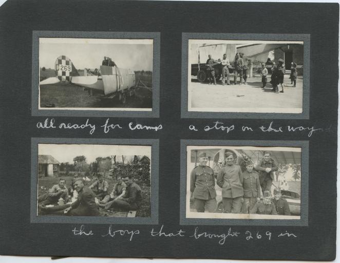 | Keywords: 1910s world war i worldwari royal flying corps royalflyingcorps royal air force royalairforce children aircraft curtiss jn-4 curtissjn4 men uniforms electronics "all ready for camp" "a stop on the way" "the boys that brought 269 in" Photos of a Curtiss JN-4 aircraft (C269) being transported from its landing/crash site back to the camp. Photographs taken by Harry McBride (1893-1969), who worked as a rigger in the Royal Flying Corps and Royal Air Force during the First World War. He was stationed at Camp Mohawk near Deseronto, Ontario, and also at Camp Taliaferro near Fort Worth, Texas. Scanned images donated to the Archives by Dan McBride, Harry's grandson. "all ready for camp" "a stop on the way" "the boys that brought 269 in" Photos of a Curtiss JN-4 aircraft (C269) being transported from its landing/crash site back to the camp. Photographs taken by Harry McBride (1893-1969), who worked as a rigger in the Royal Flying Corps and Royal Air Force during the First World War. He was stationed at Camp Mohawk near Deseronto, Ontario, and also at Camp Taliaferro near Fort Worth, Texas. Scanned images donated to the Archives by Dan McBride, Harry's grandson. |