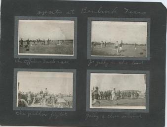 | Keywords: 1910s world war i worldwari royal flying corps royalflyingcorps royal air force royalairforce sports architecture window picture frame "Sports at Benbrook Texas" "the Officers sack race" "Joe Gally in the lead" "the pillow fight" "Gally a close second" Photographs taken by Harry McBride (1893-1969), who worked as a rigger in the Royal Flying Corps and Royal Air Force during the First World War. He was stationed at Camp Mohawk near Deseronto, Ontario, and also at Camp Taliaferro near Fort Worth, Texas. Scanned images donated to the Archives by Dan McBride, Harry's grandson. "Sports at Benbrook Texas" "the Officers sack race" "Joe Gally in the lead" "the pillow fight" "Gally a close second" Photographs taken by Harry McBride (1893-1969), who worked as a rigger in the Royal Flying Corps and Royal Air Force during the First World War. He was stationed at Camp Mohawk near Deseronto, Ontario, and also at Camp Taliaferro near Fort Worth, Texas. Scanned images donated to the Archives by Dan McBride, Harry's grandson. |