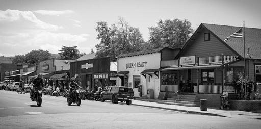 | Keywords: blackandwhite monochrome outdoor building architecture black and white Black and white look at Julian, California on a warm summer day in August 2015, the guy on the bike popped a front wheely at the right moment for me. Black and white look at Julian, California on a warm summer day in August 2015, the guy on the bike popped a front wheely at the right moment for me. |