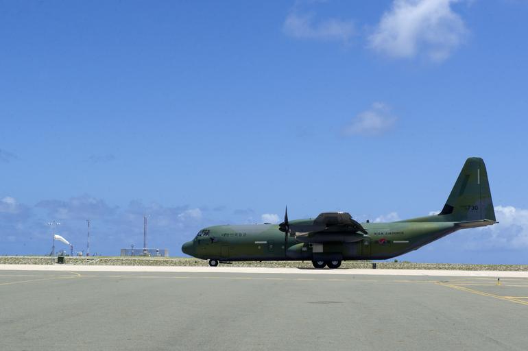 Keywords: usaf u.s. air force usairforce pacaf pacom wake island wakeisland jber joint base elmendorf-richardson jointbaseelmendorfrichardson prsc 611th asus 611thasus world war ii worldwarii wwii 75th anniversary 75thanniversary battle of wake island battleofwakeisland outdoor A Republic of Korea Air Force C-130J Super Hercules lands at Wake Island Airfield June 3. Two ROKAF C-130s carried 100 ROKAF Academy cadets across the Pacific. Wake Island, "Where America's Day Really Begins," is an American possession in the middle Pacific within the Micronesia subregion, 2300 miles west of Hawaii and 2000 miles southeast of Tokyo. The coral atoll comprises three islands and roughly 2.8 square miles of dry land. In recognition of its importance during WWII in the Pacific and to thousands of species of sea birds, fish, and other oceanic flaura and fauna today, Wake Island is designated as both a National Historic Landmark and part of the Pacific Remote Islands Marine National Monument. A Republic of Korea Air Force C-130J Super Hercules lands at Wake Island Airfield June 3. Two ROKAF C-130s carried 100 ROKAF Academy cadets across the Pacific. Wake Island, "Where America's Day Really Begins," is an American possession in the middle Pacific within the Micronesia subregion, 2300 miles west of Hawaii and 2000 miles southeast of Tokyo. The coral atoll comprises three islands and roughly 2.8 square miles of dry land. In recognition of its importance during WWII in the Pacific and to thousands of species of sea birds, fish, and other oceanic flaura and fauna today, Wake Island is designated as both a National Historic Landmark and part of the Pacific Remote Islands Marine National Monument.