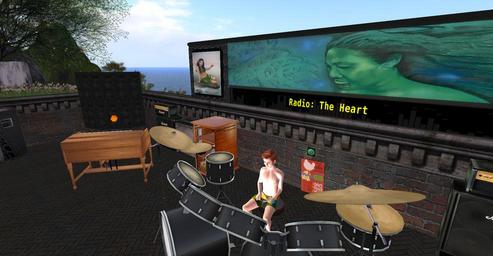 Keywords: Trying out the drums. Sadly, I could find no drum sticks. boy drums drummer music fun evening shore