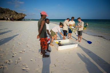 | Keywords: outdoor KENYA, Watamu: In a photograph taken by Make It Kenya 17 January 2016, members HerdTracker and the Local Ocean Trust (LOT) prepare to release a green sea turtle back into the Indian Ocean from a beach in Watamu. In a world first, the sea turtle had a detachable GoPro camera mounted on it's back to enable live streaming over the internet broadcast on Twitter's Periscope application as it made it's way down the beach, entering the surf and swimming back out into open water. Kenya's famous wildlife and beautiful tropical coastline was for two weeks being showcased in a series of live web broadcasts using state-of–the-art technology. #KenyaLive enabled people to witness the excitement of a night safari in the Mara in real time using specialist night-vision equipment as well as the release and first moments back in the wild of rehabilitated sea turtles which had accidentally been caught in fishing nets along the Watamu coast. The series of broadcasts highlighted the work of the LOT turtle conservation organisation, in addition to the many other and varied activities Watamu has to offer including stand-up paddle boarding with dolphins, snorkelling and scuba diving, all broadcast live by HerdTracker and Make It Kenya using the social media application Periscope. MAKE IT KENYA PHOTO / STUART PRICE. KENYA, Watamu: In a photograph taken by Make It Kenya 17 January 2016, members HerdTracker and the Local Ocean Trust (LOT) prepare to release a green sea turtle back into the Indian Ocean from a beach in Watamu. In a world first, the sea turtle had a detachable GoPro camera mounted on it's back to enable live streaming over the internet broadcast on Twitter's Periscope application as it made it's way down the beach, entering the surf and swimming back out into open water. Kenya's famous wildlife and beautiful tropical coastline was for two weeks being showcased in a series of live web broadcasts using state-of–the-art technology. #KenyaLive enabled people to witness the excitement of a night safari in the Mara in real time using specialist night-vision equipment as well as the release and first moments back in the wild of rehabilitated sea turtles which had accidentally been caught in fishing nets along the Watamu coast. The series of broadcasts highlighted the work of the LOT turtle conservation organisation, in addition to the many other and varied activities Watamu has to offer including stand-up paddle boarding with dolphins, snorkelling and scuba diving, all broadcast live by HerdTracker and Make It Kenya using the social media application Periscope. MAKE IT KENYA PHOTO / STUART PRICE. |