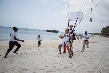 | Keywords: outdoor KENYA, Watamu: In a photograph taken by Make It Kenya 17 January 2016, Kenya's Cabinet Secretary for Tourism Hon. Najib Balala arrives in the coastal town of Watamu by parachute after skydiving out of a plane from approx. 11,000ft. Kenya's famous wildlife and beautiful tropical coastline is being showcased in a series of live web broadcasts using state-of–the-art technology. #KenyaLive has enabled people to witness the excitement of a night safari in the Mara in real time using specialist night-vision equipment and is now in Watamu highlighting the work of the turtle conservation organisation Local Ocean Trust, and other activities including stand-up paddle boarding with dolphins, snorkelling and scuba diving by using the scial media application Periscope. MAKE IT KENYA PHOTO / STUART PRICE. KENYA, Watamu: In a photograph taken by Make It Kenya 17 January 2016, Kenya's Cabinet Secretary for Tourism Hon. Najib Balala arrives in the coastal town of Watamu by parachute after skydiving out of a plane from approx. 11,000ft. Kenya's famous wildlife and beautiful tropical coastline is being showcased in a series of live web broadcasts using state-of–the-art technology. #KenyaLive has enabled people to witness the excitement of a night safari in the Mara in real time using specialist night-vision equipment and is now in Watamu highlighting the work of the turtle conservation organisation Local Ocean Trust, and other activities including stand-up paddle boarding with dolphins, snorkelling and scuba diving by using the scial media application Periscope. MAKE IT KENYA PHOTO / STUART PRICE. |