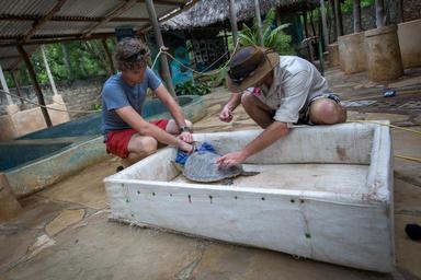 | Keywords: KENYA, Watamu: In a photograph taken by Make It Kenya 18 January 2016, Casper van de Geer (left), project manager of the Local Ocean Trust (LOT) in Watamu and HerdTracker's Carel Verhoef, ready a green sea turtle to have a detachable GoPro camera mounted on it's carapace ahead of it's release back to the Indian Ocean. In a world first, the event was streamed over the internet, broadcast on Twitter's Periscope application as the sea turtle entered the surf and swam back out into open water. Kenya's famous wildlife and beautiful tropical coastline was for two weeks being showcased in a series of live web broadcasts using state-of–the-art technology. #KenyaLive enabled people to witness the excitement of a night safari in the Mara in real time using specialist night-vision equipment as well as the release and first moments back in the wild of rehabilitated sea turtles which had accidentally been caught in fishing nets along the Watamu coast. The series of broadcasts highlighted the work of the LOT turtle conservation organisation, in addition to the many other and varied activities Watamu has to offer including stand-up paddle boarding with dolphins, snorkelling and scuba diving, all broadcast live by HerdTracker and Make It Kenya using the social media application Periscope. MAKE IT KENYA PHOTO / STUART PRICE. KENYA, Watamu: In a photograph taken by Make It Kenya 18 January 2016, Casper van de Geer (left), project manager of the Local Ocean Trust (LOT) in Watamu and HerdTracker's Carel Verhoef, ready a green sea turtle to have a detachable GoPro camera mounted on it's carapace ahead of it's release back to the Indian Ocean. In a world first, the event was streamed over the internet, broadcast on Twitter's Periscope application as the sea turtle entered the surf and swam back out into open water. Kenya's famous wildlife and beautiful tropical coastline was for two weeks being showcased in a series of live web broadcasts using state-of–the-art technology. #KenyaLive enabled people to witness the excitement of a night safari in the Mara in real time using specialist night-vision equipment as well as the release and first moments back in the wild of rehabilitated sea turtles which had accidentally been caught in fishing nets along the Watamu coast. The series of broadcasts highlighted the work of the LOT turtle conservation organisation, in addition to the many other and varied activities Watamu has to offer including stand-up paddle boarding with dolphins, snorkelling and scuba diving, all broadcast live by HerdTracker and Make It Kenya using the social media application Periscope. MAKE IT KENYA PHOTO / STUART PRICE. |