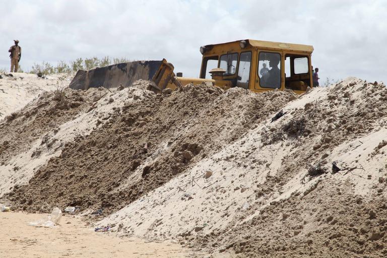 | Keywords: outdoor soil An AMISOM bulldozer moves soil in order to help block the sea from flooding Dabyambo village in Kismayo, Somalia. On April 10, 2016. AMISOM Photo/ Barut Mohamed An AMISOM bulldozer moves soil in order to help block the sea from flooding Dabyambo village in Kismayo, Somalia. On April 10, 2016. AMISOM Photo/ Barut Mohamed  An AMISOM bulldozer moves soil in order to help block the sea from flooding Dabyambo village in Kismayo, Somalia. On April 10, 2016. AMISOM Photo/ Barut Mohamed 2016 04 10 Beach Floodings-2 (25762170224).jpg  An AMISOM bulldozer moves soil in order to help block the sea from flooding Dabyambo village in Kismayo Somalia On April 10 2016 AMISOM Photo/ Barut Mohamed<br/> Personality rights https //www flickr com/photos/au_unistphotostream/25762170224/ 2016_04_10_Beach_Floodings-2 2016-04-10 13 37 https //www flickr com/people/61765479 N08 AMISOM Public Information cc-zero AMISOM Public Information https //flickr com/photos/61765479 N08/25762170224 2016-05-19 20 56 50 cc-zero Photographs by the African Union Mission to Somalia Uncategorized 2016 October 23 |