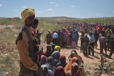 Keywords: outdoor Soldiers from the Somali National Army stand watch as women wait at an IDP camp near the town of Beletweyne, Somalia, for a food handout by the Djiboutian government on May 29, 2016. Flooding in the Hiraan region of Somalia has led to the displacement of 17,000 people so far and is the worst to hit the region since 1981. AMISOM Photo / Tobin Jones Soldiers from the Somali National Army stand watch as women wait at an IDP camp near the town of Beletweyne, Somalia, for a food handout by the Djiboutian government on May 29, 2016. Flooding in the Hiraan region of Somalia has led to the displacement of 17,000 people so far and is the worst to hit the region since 1981. AMISOM Photo / Tobin Jones