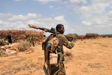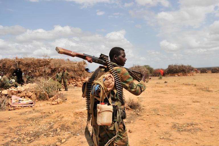 | Keywords: outdoor animal An Ethiopian soldier serving under the African Union Mission in Somalia (AMISOM) on foot patrol in Halgan village, Hiran region on June 10, 2016. This was a day after a battle with Al-Shabaab militants on June 09, 2016. Maj. Gen. Nakibus Lakara, the AMISOM Acting Force Commander said more than 140 Al-Shabaab militants were killed in the battle. AMISOM Photo / Ilyas Ahmed An Ethiopian soldier serving under the African Union Mission in Somalia (AMISOM) on foot patrol in Halgan village, Hiran region on June 10, 2016. This was a day after a battle with Al-Shabaab militants on June 09, 2016. Maj. Gen. Nakibus Lakara, the AMISOM Acting Force Commander said more than 140 Al-Shabaab militants were killed in the battle. AMISOM Photo / Ilyas Ahmed |