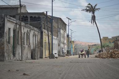 Keywords: outdoor road Two men walk down the street with a donkey cart loaded with supplies in Barawe, Somalia, on August 23, 2016. Barawe, formerly a stronhold of the terrorist group al Shabab, was captured from the group nearly two years ago by the African Union Mission in Somalia and has since been in government hands. AMISOM photo / Tobin Jones Two men walk down the street with a donkey cart loaded with supplies in Barawe, Somalia, on August 23, 2016. Barawe, formerly a stronhold of the terrorist group al Shabab, was captured from the group nearly two years ago by the African Union Mission in Somalia and has since been in government hands. AMISOM photo / Tobin Jones