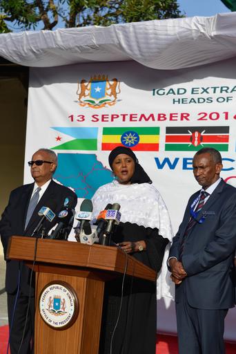 | Keywords: Kenya's Foreign Affairs Cabinet Secretary Amina Mohamed (middle), reads the communique at the conclusion of the historic 28th Extra-Ordinary IGAD Heads of State Summit in Mogadishu, Somalia on September 13, 2016. AMISOM Photo / Omar Abdisalan Kenya's Foreign Affairs Cabinet Secretary Amina Mohamed (middle), reads the communique at the conclusion of the historic 28th Extra-Ordinary IGAD Heads of State Summit in Mogadishu, Somalia on September 13, 2016. AMISOM Photo / Omar Abdisalan | ||||