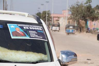 | Keywords: outdoor A campaign poster for an aspirant for the Federal Lower House of Parliament, Mohamed Kerow Mohamed is displayed on the car windscreen in Baidoa, Somalia on September 21, 2016. AMISOM Photo/ Sabir Olad A campaign poster for an aspirant for the Federal Lower House of Parliament, Mohamed Kerow Mohamed is displayed on the car windscreen in Baidoa, Somalia on September 21, 2016. AMISOM Photo/ Sabir Olad | ||||