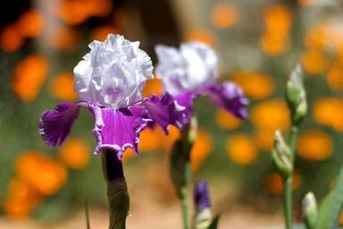 | Keywords: iris 2016366 flower poppy spring depth of field bokeh plant outdoor It's quite a colorful show so far this year- those irises are white standards on purple falls, with a backing chorus of California Poppies It's quite a colorful show so far this year- those irises are white standards on purple falls, with a backing chorus of California Poppies |