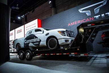 | Keywords: LAS VEGAS (Nov. 3, 2015) – Fresh from being named the "Truck of Texas" by the Texas Auto Writers Association (TAWA), the 2016 TITAN XD, with its Cummins® 5.0L V8 Turbo Diesel, makes an ideal, if unconventional, land speed record racer. Dubbed "Project Triple Nickel" as an homage to a stock TITAN XD’s 555 lb.-ft. torque rating, the specially outfitted truck was revealed today at the 2015 Specialty Equipment Market Association (SEMA) show. cummins project555 triplenickles titanxd |