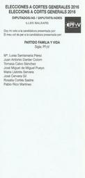 | Keywords: 2016 Spanish General Elections Ballot - Illes Balears - Familia y Vida (PFyV).png es Papeleta electoral de Familia y Vida PFyV para el Congreso - Elecciones Generales de España de 2016 circunscripción de Illes Balears 2016-06-26 own JulianVillodre other versions cc-zero PD-SpanishGov <br/> De minimis The party logo Ballot papers for the 2016 general election for the Balearic Islands All medias supported by Wikimedia España in 2016 Ballot papers for the 2016 Spain general election supported by Wikimedia España Uploaded via Campaign bpsge |