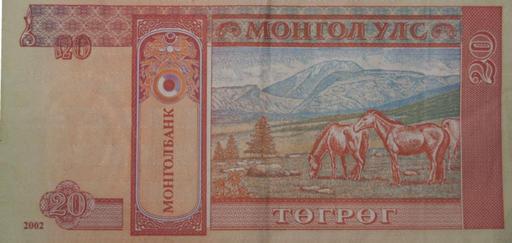 | Keywords: 20tback.png Backside of a 20 Tugrug Banknote Mongolia 2006-03-18 own assumed Marcel~commonswiki Banknotes of Mongolia Banknotes with a face value of 20 Horses on banknotes Mountains on banknotes Trees on banknotes Red banknotes Paiza on banknotes |