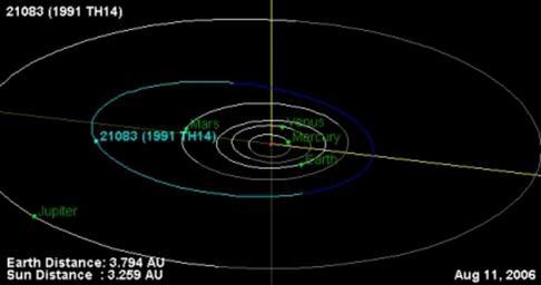 | Keywords: 21083 Orbit.jpg en This orbit diagram was generated using the JPL Small-Body Database Browser found here http //ssd jpl nasa gov/sbdb cgi 2006-08-11 own User Charlesdesaintaignan Charlesdesaintaignan en Original upload log en wikipedia ftcg page en wikipedia 21083_Orbit jpg wikitable - 18 19 11 August 2006 433 × 228 35 262 bytes Charlesdesaintaignan w en <nowiki> This orbit diagram was generated using the JPL Small-Body Database Browser found here http //ssd jpl nasa gov/sbdb cgi </nowiki> Orbits of asteroids |