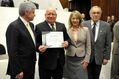 | Keywords: Assembleia Legislativa homenageia durante o Grande Expediente da sessão plenária a Associação das Emissoras de Radiodifusão do Paraná (AERP) pela comemoração de seus 37 anos. Foto: Sandro Nascimento/Alep (crédito obrigatório) homenagem aerp valdirrossoni roselitro |