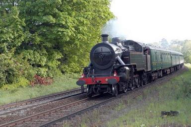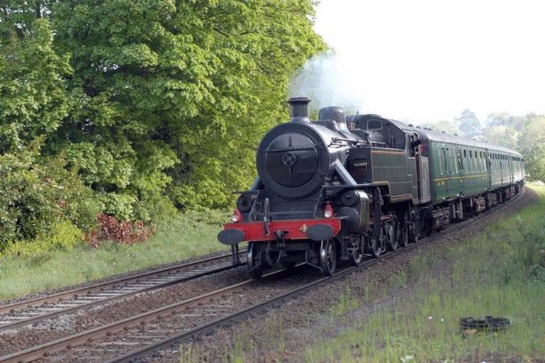 Keywords: Approaching Steam Train RPSI preserved steam train and coaches approaching Lambeg Station, County Antrim, Northern Ireland, 2005. Attribution: Wilson Adams