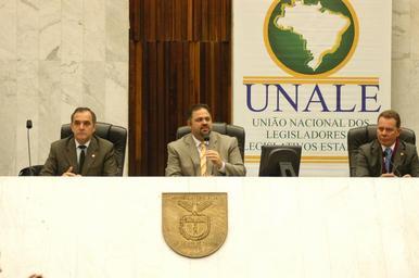 | Keywords: unale assembleia legislativa do paraná assembleialegislativadoparaná artagão jr artagãojr groupshot people indoor O presidente em exercício da Assembleia Legislativa do Paraná e vice-presidente da União Nacional dos Legisladores e Legislativos Estaduais (Unale), deputado Artagão de Mattos Leão Jr. (PMDB), foi o anfitrião da reunião ordinária da Unale, na manhã desta segunda-feira (22), no Plenário da Casa. Entre outros temas, os parlamentares discutiram a revisão do pacto federativo, um tema polêmico na opinião de Mattos Leão Jr., para quem o Poder Legislativo foi “perdendo espaço” nos últimos anos. Participaram da reunião deputados de vários estados brasileiro. Leia mais: igre.me/5xuyb Foto: Sandro Nascimento/Alep (crédito obrigatório). O presidente em exercício da Assembleia Legislativa do Paraná e vice-presidente da União Nacional dos Legisladores e Legislativos Estaduais (Unale), deputado Artagão de Mattos Leão Jr. (PMDB), foi o anfitrião da reunião ordinária da Unale, na manhã desta segunda-feira (22), no Plenário da Casa. Entre outros temas, os parlamentares discutiram a revisão do pacto federativo, um tema polêmico na opinião de Mattos Leão Jr., para quem o Poder Legislativo foi “perdendo espaço” nos últimos anos. Participaram da reunião deputados de vários estados brasileiro. Leia mais: igre.me/5xuyb Foto: Sandro Nascimento/Alep (crédito obrigatório). |