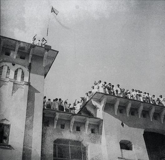 | Keywords: 22 Feb 1952 KolaVaban.png বাংলা ২২শে ফেব্রুয়ারি ১৯৫২ সকালে পুরাতন কলাভবন শ র্ষে কালো পতাকা উত্তোলন। <br>English 22nd February morning 1952 Black flag hosting on top of old arts faculty building Author's Album 1952-02-21 Prof Rafiqul Islam PD-Pakistan GFDL cc-by-3 0 Photos by Rafiqul Islam |