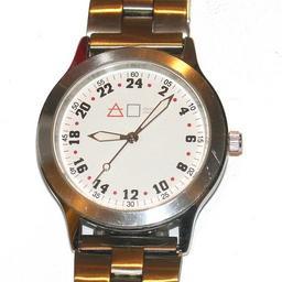 | Keywords: 24-hour watch by Zureks.jpg en A watch with 24-hour mechanism The hands rotate with half of the speed of the regular watch - the time shown in 18 07 pl Zegarek z 24-godzinnym cyferblatem Wskazówki obracają się 2 razy wolniej niż w zwyczajnych zegarkach - zegarek pokazuje godzinę 18 07 own Zureks 2009 Analogue watches turning once a day Time 18 07 Clockfaces with Arabic numerals 1-24 Clockfaces with different markings for even/odd numbers Clockfaces with tick marks for minutes White clockfaces Clockfaces with a third hand for seconds |