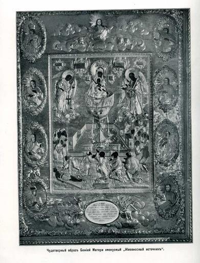 | Keywords: 25. Чудотворный образ Божией Матери, именуемый "Живоновсный Источник".jpg ru Чудотво ный об аз Божией ате и именуемый Живоновсный Источник 1904 http //andcvet narod ru/arxan/24/sam html не указано other versions Custom license marker 2014 09 24 PD-RusEmpire Uploaded with UploadWizard Album of the Sarov Hermitage views 1904 |