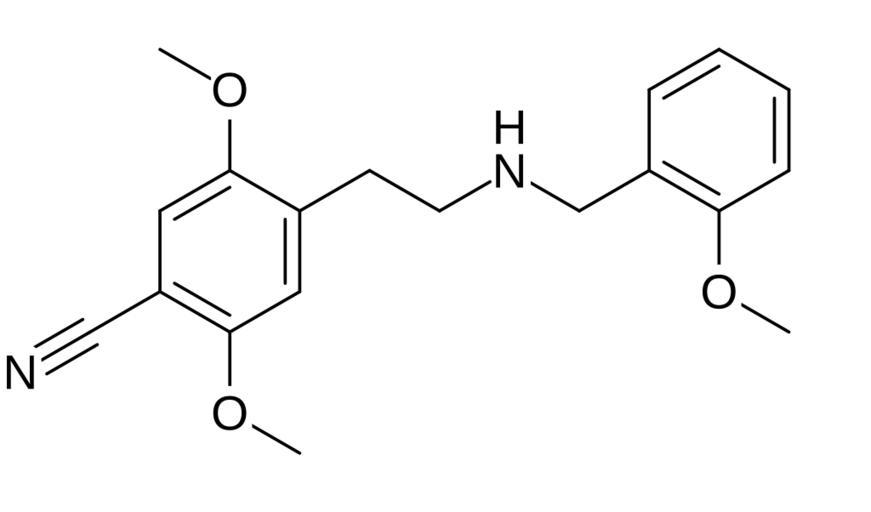 Keywords: 25CN-NBOMe.svg Chemical structure of 25CN-NBOMe Own 15 47 15 January 2014 UTC Ed Edgar181 Phenethylamines Benzonitriles