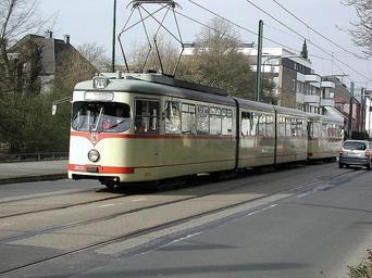 Keywords: 2673 Schloss Benrath.JPG Rheinbahn Wagen 2673 in Benrath own 2005-05-23 Mike Stephan GNU License Tram line 701 Düsseldorf Dà WAG GT8 in Düsseldorf Dà WAG trailers in Düsseldorf
