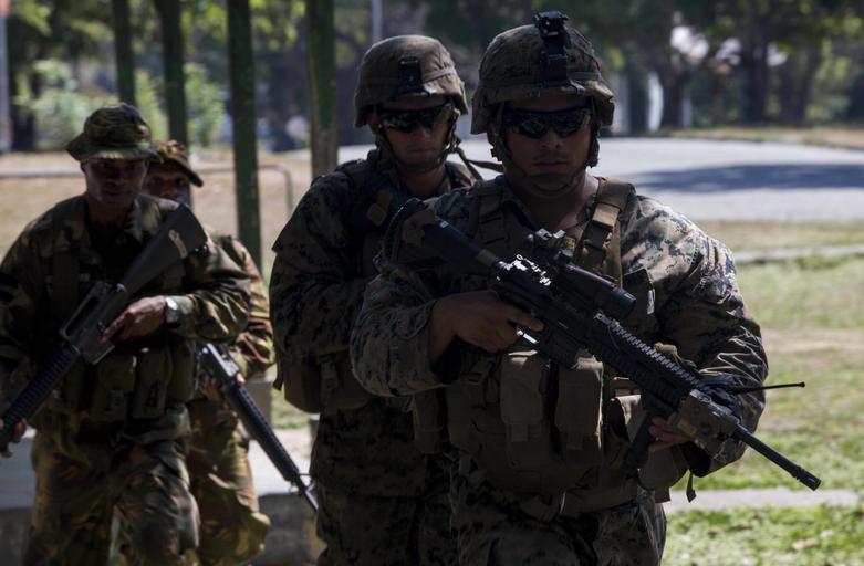 Keywords: 2688375 PNGDF urban patrol US Marines.jpg en U S Marines with Task Force Koa Moana and the Papua New Guinea Defence Force run to their objective point for a simulated military operation urban terrain patrol during Exercise Koa Moana Taurama Barracks Papua New Guinea June 20 2016 Throughout the deployment the Marines and Sailors with the task force will share infantry law enforcement and engineering skills with host nations to strengthen relationships and interoperability in the Asia-Pacific region U S Marine Corps imagery by MCIPAC Combat Camera Lance Cpl Jesus McCloud/ Released 2016-06-19 20 00 00 https //www dvidshub net/image/2688375/koa-moana-162 U S Marine Corps Lance Cpl Jesus McCloud other versions PD-USGov Papua New Guinea Defence Force Relations of Papua New Guinea and the United States Invalid equipment in Exif