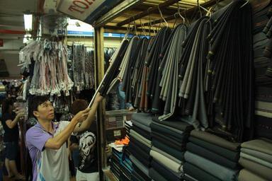 Keywords: Chiều 5h30, Ba dọn hàng.Dọn khoảng 15p là xong. Treo những tầng vải vào phía trong.