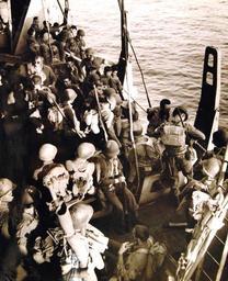 | Keywords: 26-G-2001: Operation Avalanche, Invasion of Salerno, Italy, September 1943. U.S. Soldiers invading Italy line the rail of a Coast Guard manned combat transport, waiting their turn to clamber down the side into the landing boats that will take them ashore. This picture was taken by a Coast Guard combat photographer during the battle at Paesternum, just south of Salerno. (5/19/2015). 26-G-2001: Operation Avalanche, Invasion of Salerno, Italy, September 1943. U.S. Soldiers invading Italy line the rail of a Coast Guard manned combat transport, waiting their turn to clamber down the side into the landing boats that will take them ashore. This picture was taken by a Coast Guard combat photographer during the battle at Paesternum, just south of Salerno. (5/19/2015). |