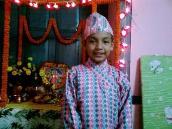 Keywords: 28102008.jpg en a Sikkimese Nepalese boy beside Goddess Luxmi shrine during the Hindu festival of Tihar Diwali Own Nitesh Sikkimese people personality rights Dipavali decorations in India