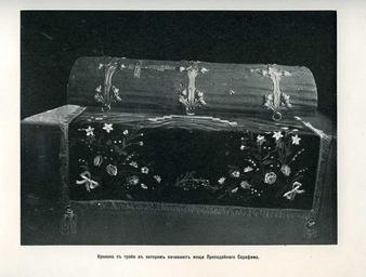 | Keywords: 28. Крышка с гроба с мощами преподобного Серафима Саровского.jpg ru К ышка с г оба с мощами п еподобного Се афима Са овского 1904 http //andcvet narod ru/arxan/24/sam html не указано other versions Custom license marker 2014 09 24 PD-RusEmpire Uploaded with UploadWizard Album of the Sarov Hermitage views 1904 |
